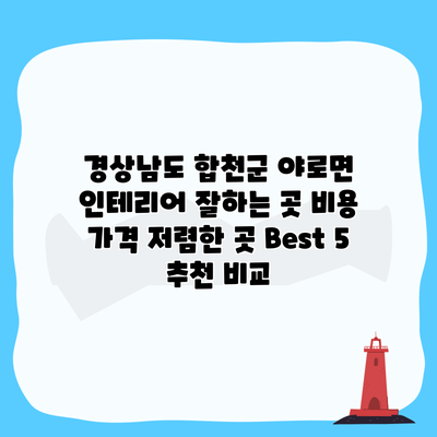 합천군 야로면에서 인테리어를 고려하시는 분들을 위해 저렴하면서도 퀄리티 높은 인테리어 업체 5곳을 정리해 보았습니다. 여기서는 각 업체의 특징, 제공하는 서비스, 그리고 초기 견적 가격 등을 비교해보도록 할게요. 아래의 표를 통해 쉽게 알아보세요!