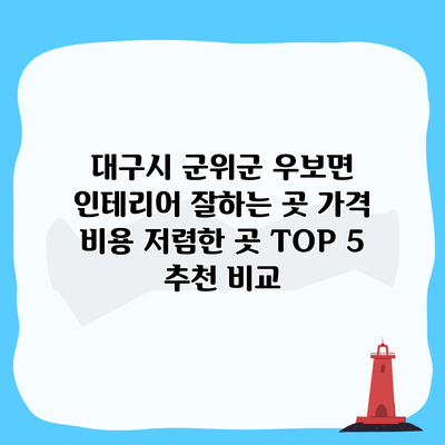 대구시 군위군 우보면에는 다양한 인테리어 업체들이 있어 선택하기 쉽지 않아요. 하지만 저렴하면서도 인테리어 전문성이 높은 업체들이 많답니다. 여기에서는 군위군 우보면에서 추천할 만한 인테리어 업체 TOP 5를 정리해 보았어요.