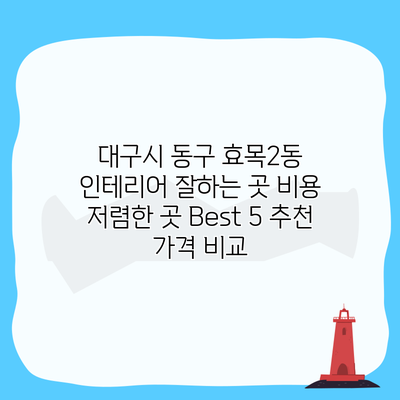 대구시 동구 효목2동은 최근 인테리어 사업이 활발히 이루어지는 지역으로, 주택과 상업 공간의 꾸밀 대목이 크게 증가하고 있습니다. 특히, 많은 사람들이 인테리어 비용을 절감하면서도 품질 높은 시공을 원하고 있지만, 어디에서 시작해야 할지 고민합니다. 이번 글에서는 효목2동에서 인테리어 잘하는 곳에 대해 알아보며, 비용이 저렴한 Best 5업체를 추천하고 가격 비교를 통해 선택의 폭을 넓힐 수 있도록 도와드리겠습니다.