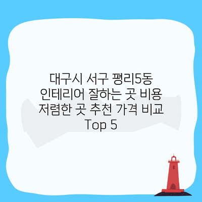 대구시 서구 평리5동에서 인테리어를 잘하는 곳들은 정말 많이 있지만, 여기서는 그중에서도 추천할 만한 5곳을 모아봤어요. 각 업체의 특성과 추천 포인트를 간단히 정리해 드릴게요. 이 정보를 통해 여러분들이 더욱 쉽게 선택할 수 있도록 도와드릴게요.