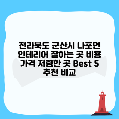 아래의 표는 군산시 나포면에서 추천하는 인테리어 업체 5곳입니다. 이들은 모두 신뢰할 수 있는 업체들로, 각 업체의 특징과 가격대가 포함되어 있습니다.