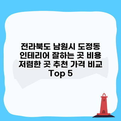 이렇게 전라북도 남원시 도정동에서 인테리어를 잘하는 Top 5 업체들을 소개해드렸어요. 각 업체마다 특색이 있으니, 본인의 스타일과 예산에 맞는 업체를 선택하기 좋은 기준이 될 것 같아요. 다음 섹션에서는 인테리어 비용을 저렴하게 찾는 방법에 대해 더 알아보도록 할게요!